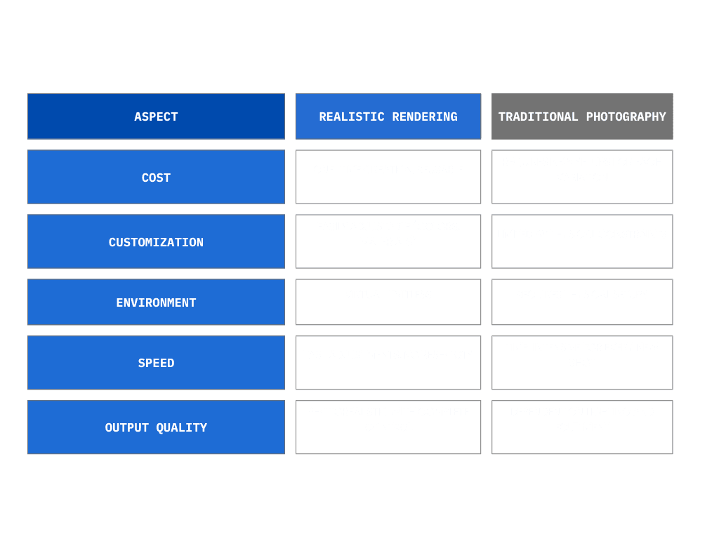If your product is still in the design phase or is too complex for traditional photography (e.g., technology, machinery), rendering can create a lifelike representation before it even exists physically.